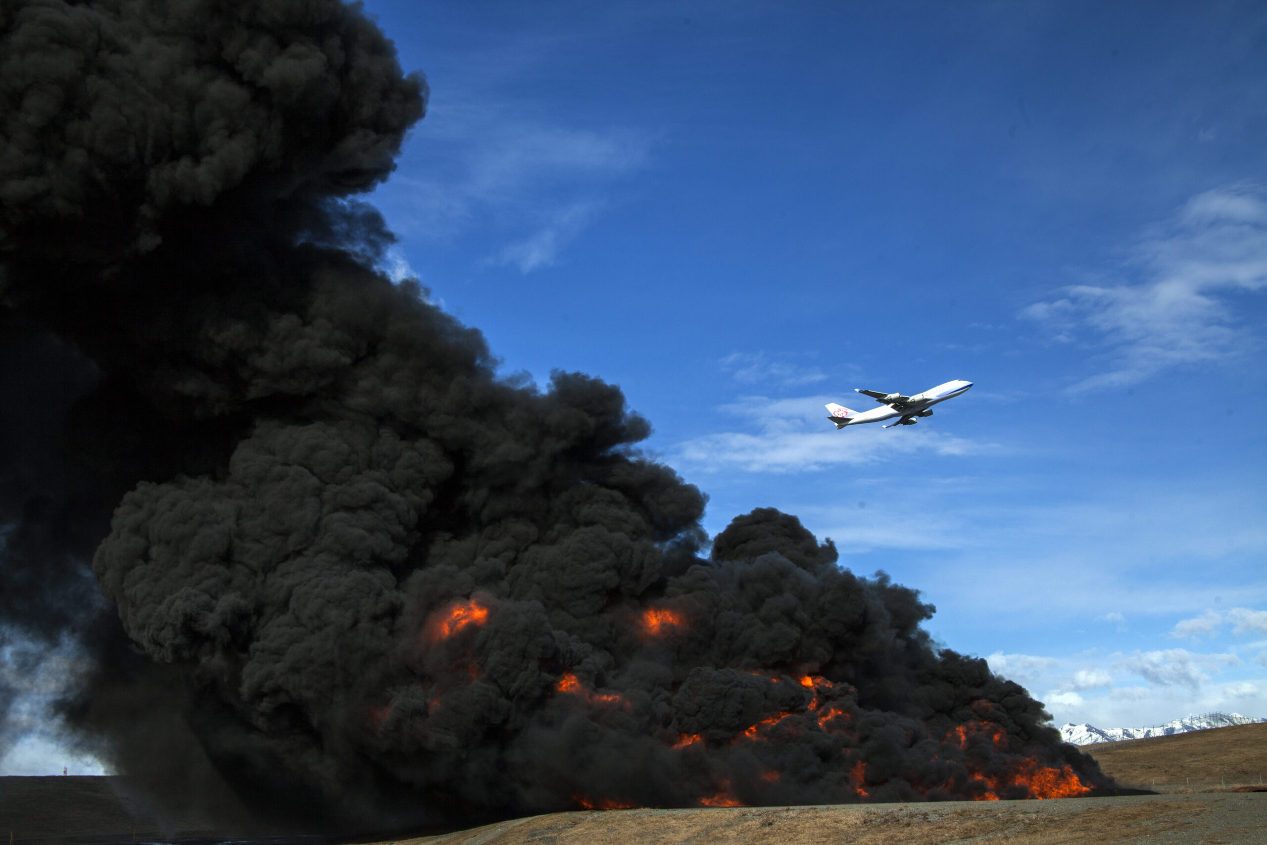 Takeoff over fire burn
